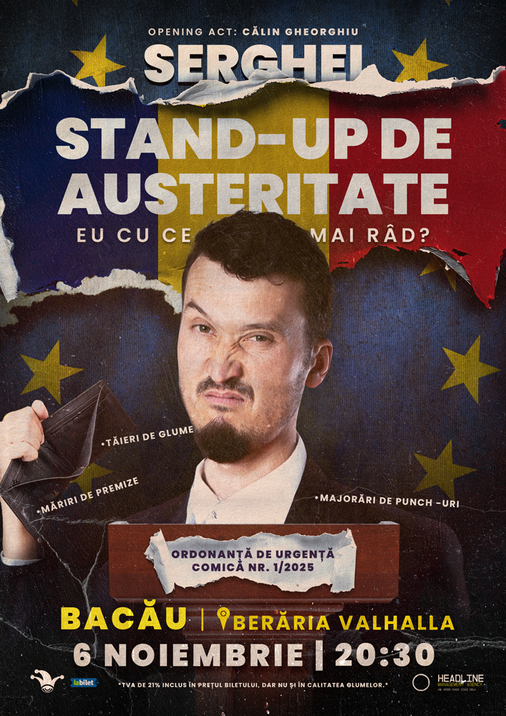 Pentru acest eveniment nu este permisă renunțarea la biletele achiziționate. În caz de anulare a evenimentului, veți fi notificat pe email, iar contravaloarea biletelor este returnată în maxim 7 zile lucrătoare.