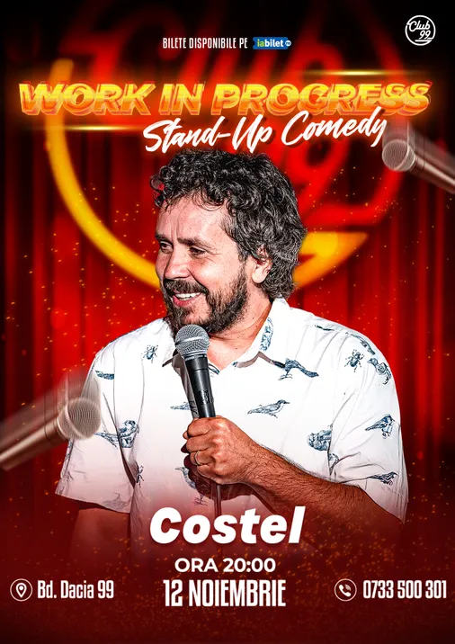 Ești curios de cum se crează o glumă? Unde se adaugă virgula sau punchline-ul? Vă așteptăm la un spectacol de stand up comedy alături de Costel cu materialul „work in progress”. Promitem că pentru râs nu va trebui să munciți.