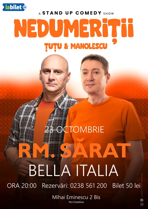 Râmnicu Sărat, revenim cu show nou, aşa că adună-ţi gaşca şi vino joi, 23 octombrie, la Bella Italia, să îi vezi pe Cristi – ce mi-ai pus pe tăviţă, mamă – Manolescu şi Dan Ţuţu, un povestitor desăvârşit care te va cuceri cu naturaleţea sa. Cel mai bun mod de a petrece seara de joi, e la un show live de stand-up comedy.