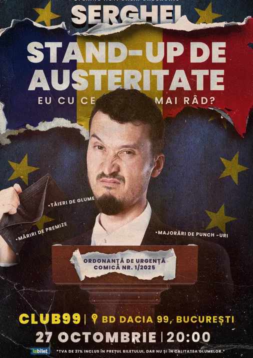 Pregătiți-vă pentru un spectacol de stand-up comedy în care se aplică un nou pachet de măsuri: se taie din glumele proaste, se măresc premisele absurde și se majorează punchline-urile, ca să facă față inflației de motive de îngrijorare.